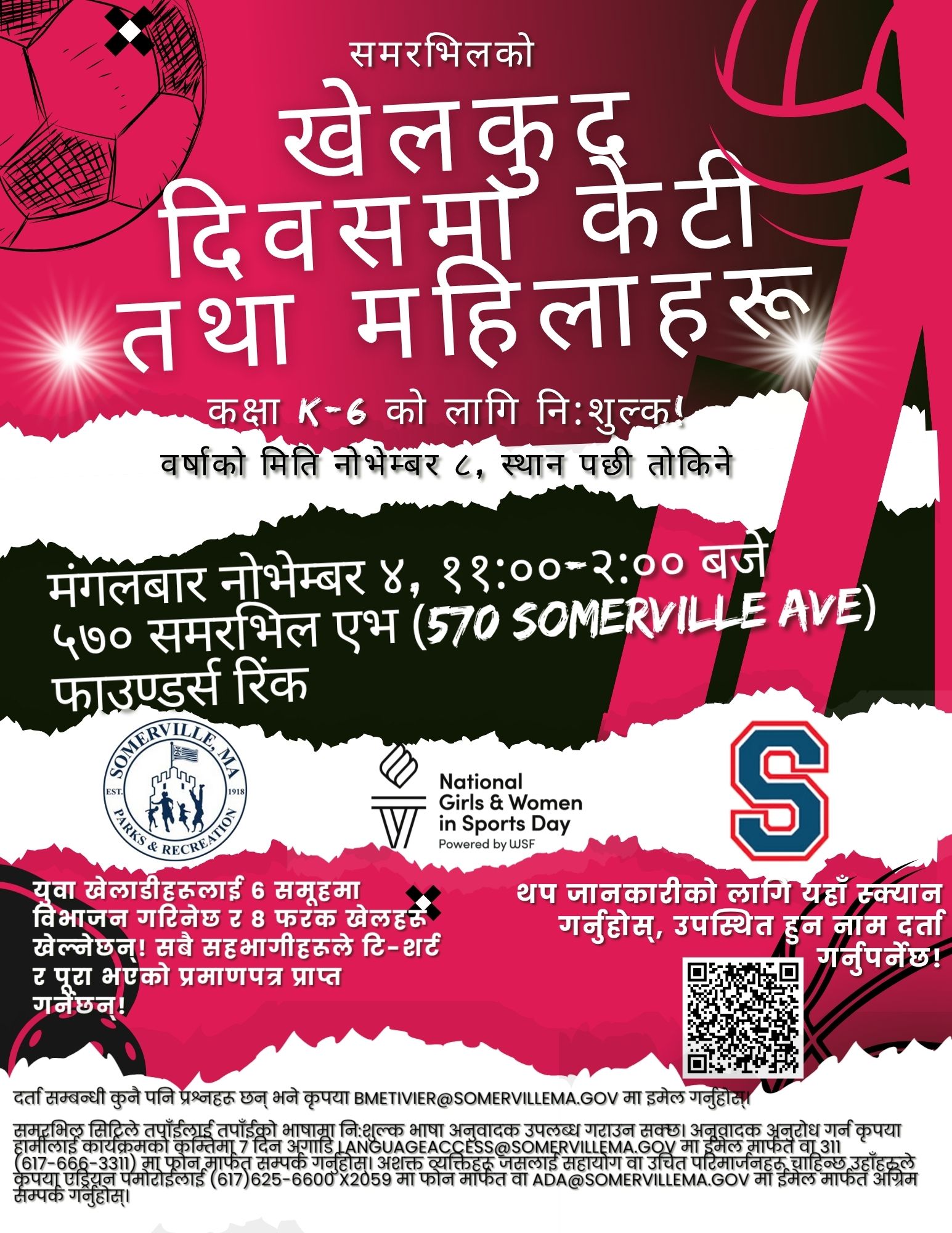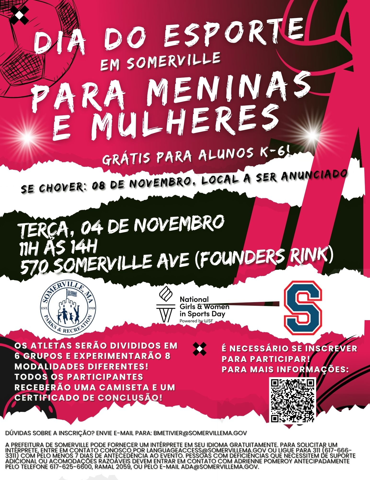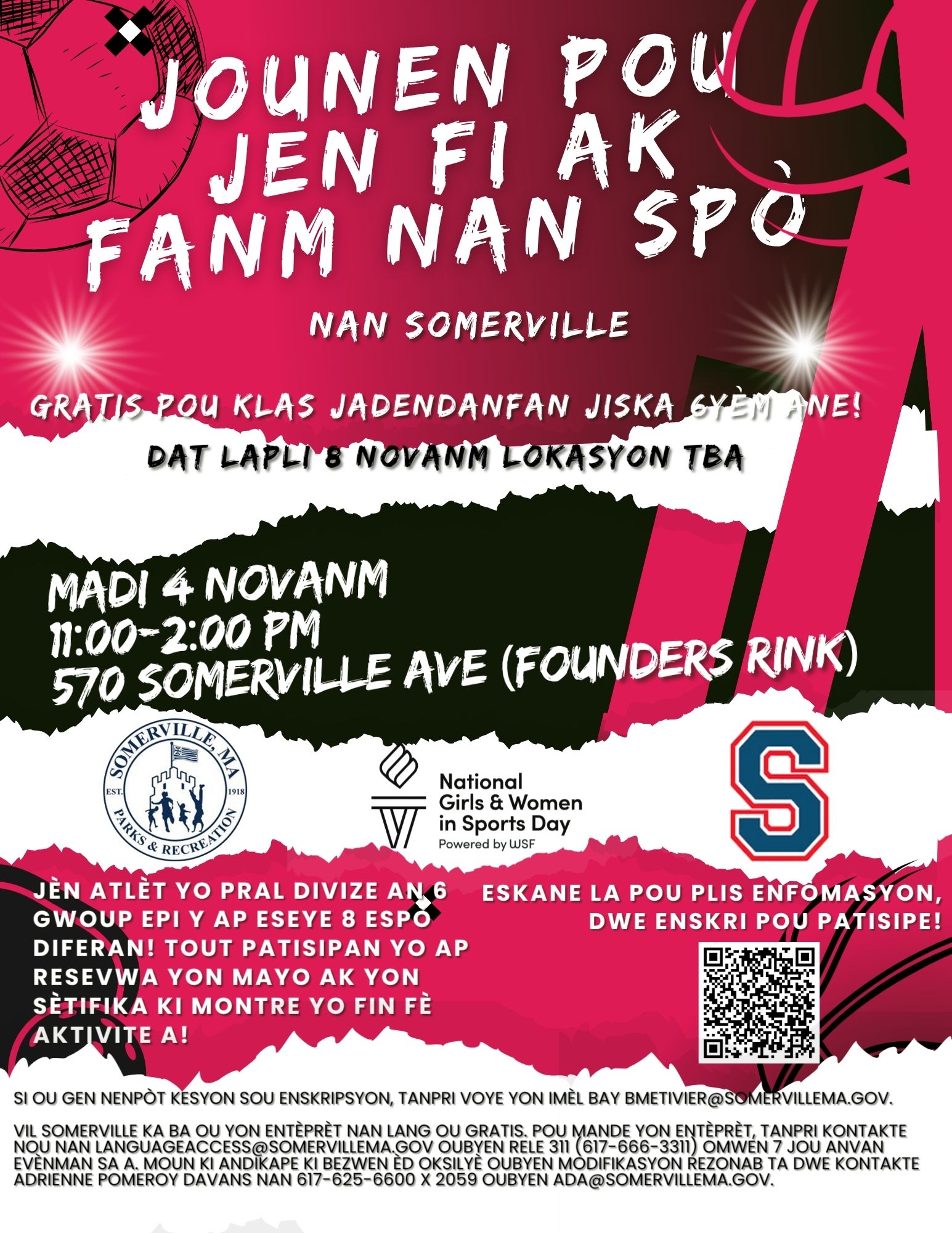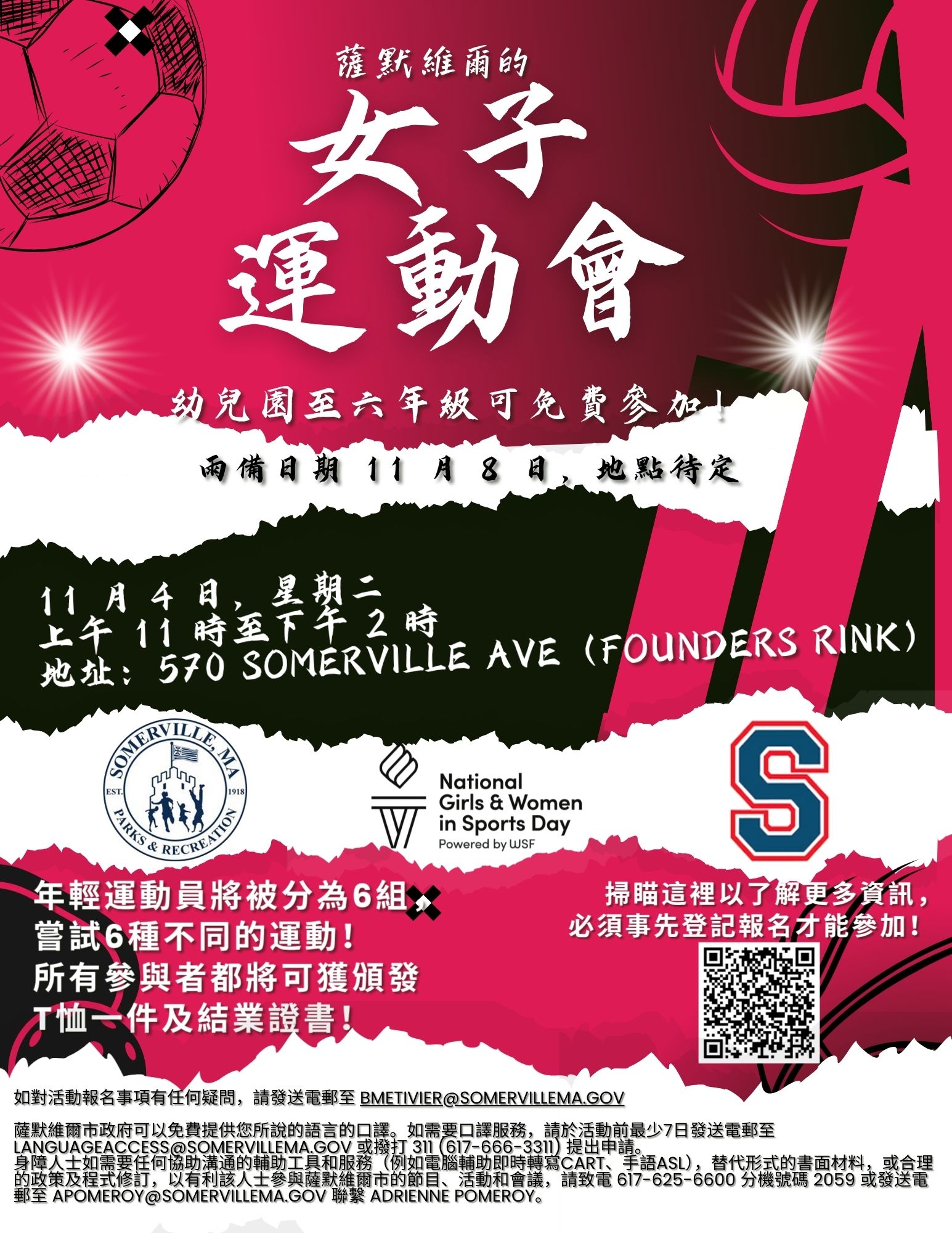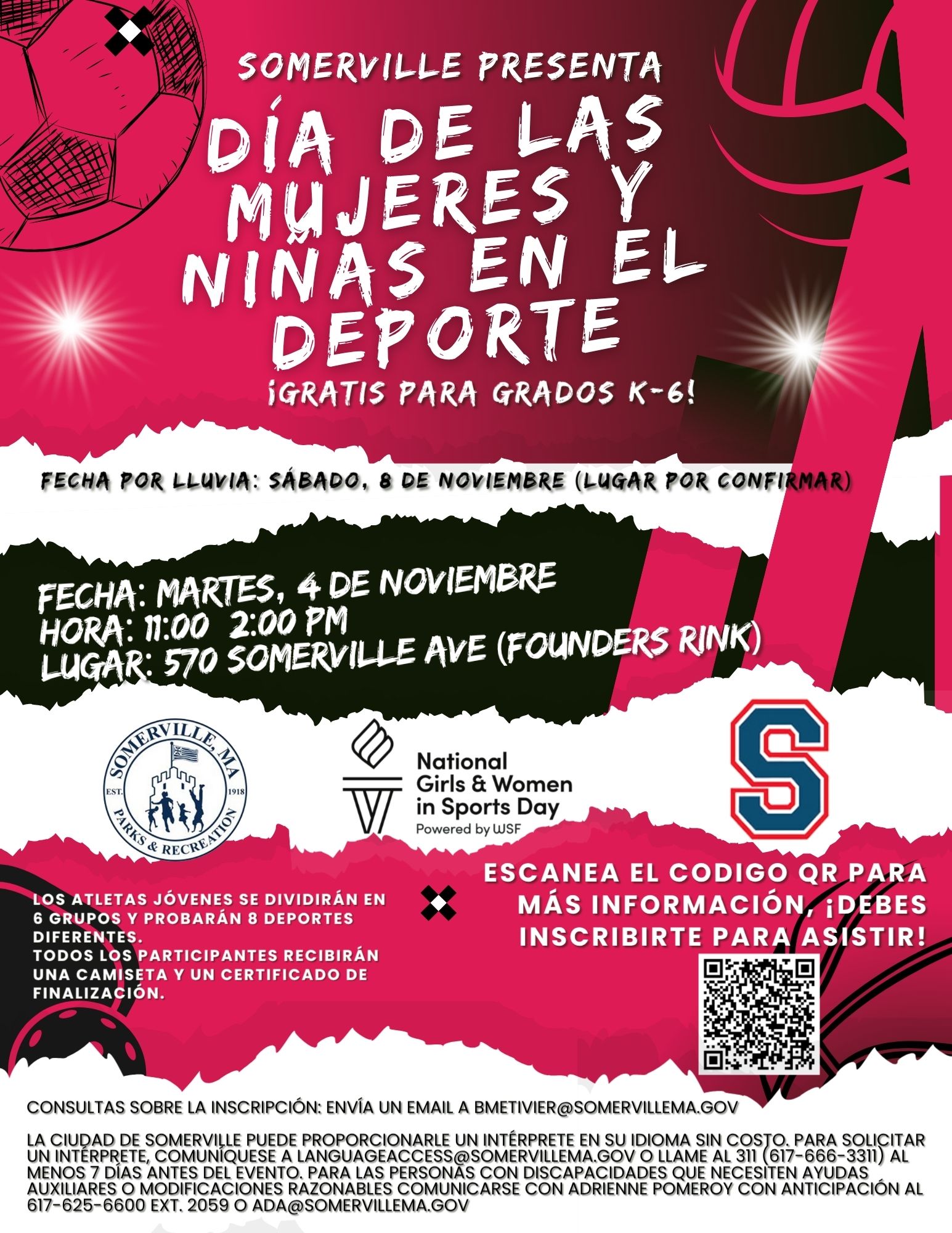 Somerville Parks and Recreation and Somerville High School Athletics are teaming up to offer a community event on Tuesday November 4 (Election Day, no school) to support Girls and Women in Sports Day.